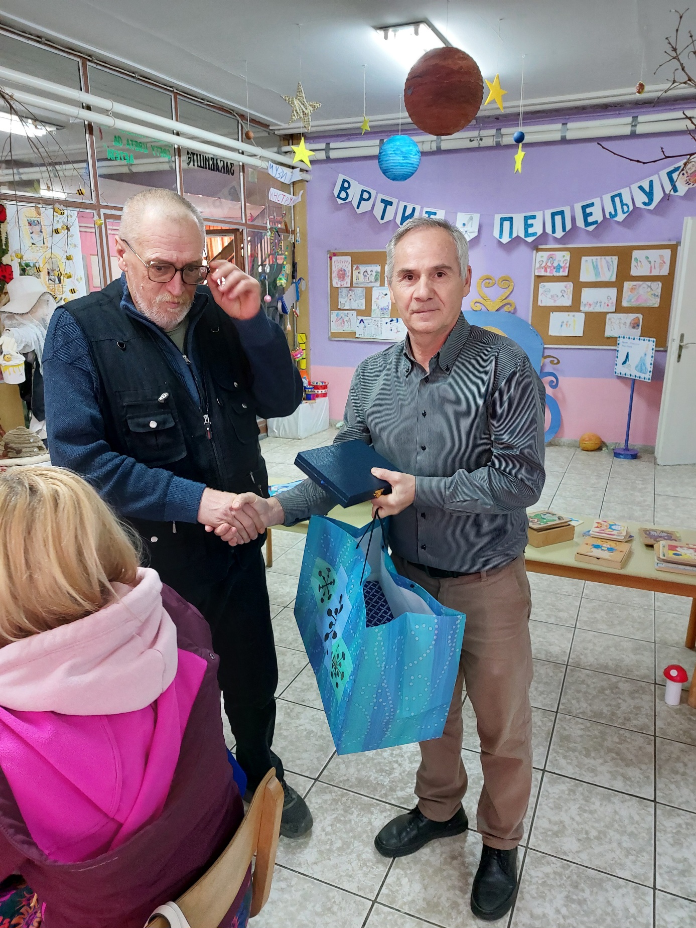 Милан Сибиновски дугогодишњи је помоћни радник школе. Након поздравног говора и лепе речи, пригодан поклон уручио му је директор школе Љупче Трпчевски.